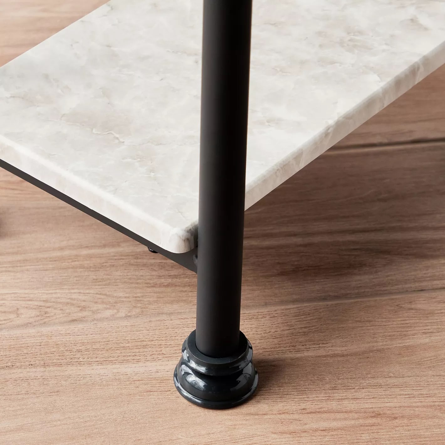 طاولة شاي أنيقة بسطح رخامي وأرجل فولاذية مصقولة، مثالية للمساحات الراقية.