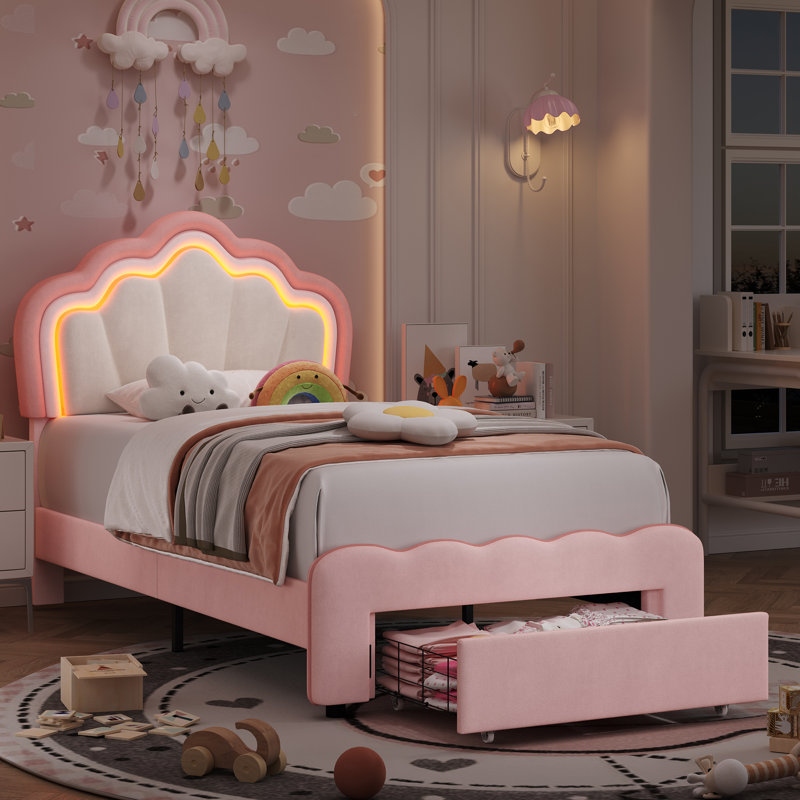 يتميز هذا السرير المنصة المبطن برأس على شكل زهرة مع إضاءة LED مدمجة، مثالي لخلق جو حالم في غرفة النوم. مُبطن حسب اختيارك بجلد PU المتين أو المخمل الناعم، ويوفر راحة قصوى للنوم أو القراءة أو مشاهدة الأفلام. درجين كبيري السعة تحت السرير يقدمان مساحة واسعة لتخزين الملابس والأغطية وغيرها، مما يحافظ على ترتيب الغرفة. يمكن تعديل رأس السرير لضبط زاوية الميل للحصول على دعم إضافي ومرونة استخدام.